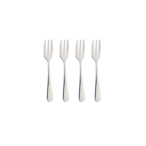 - Dessertgafler: Fire tænder, almindeligvis uden skarp tand.